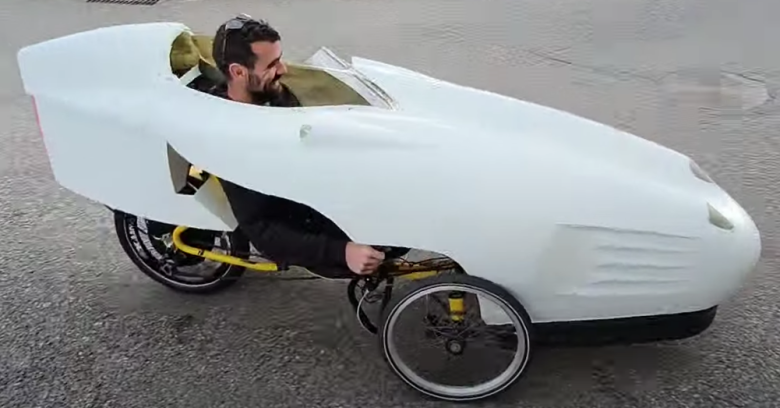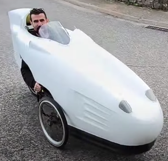 Sur la base d'un vélo couché à 3 roues, équipé d'une coque en fibres de verre et de carbonne ainsi que d'une motorisation électrique, ce véhicule est optimisé pour être très léger, tout en fournissant des performances qui permettent de se passer de véhicule à moteur thermique pour des trajets de moins de 60 km